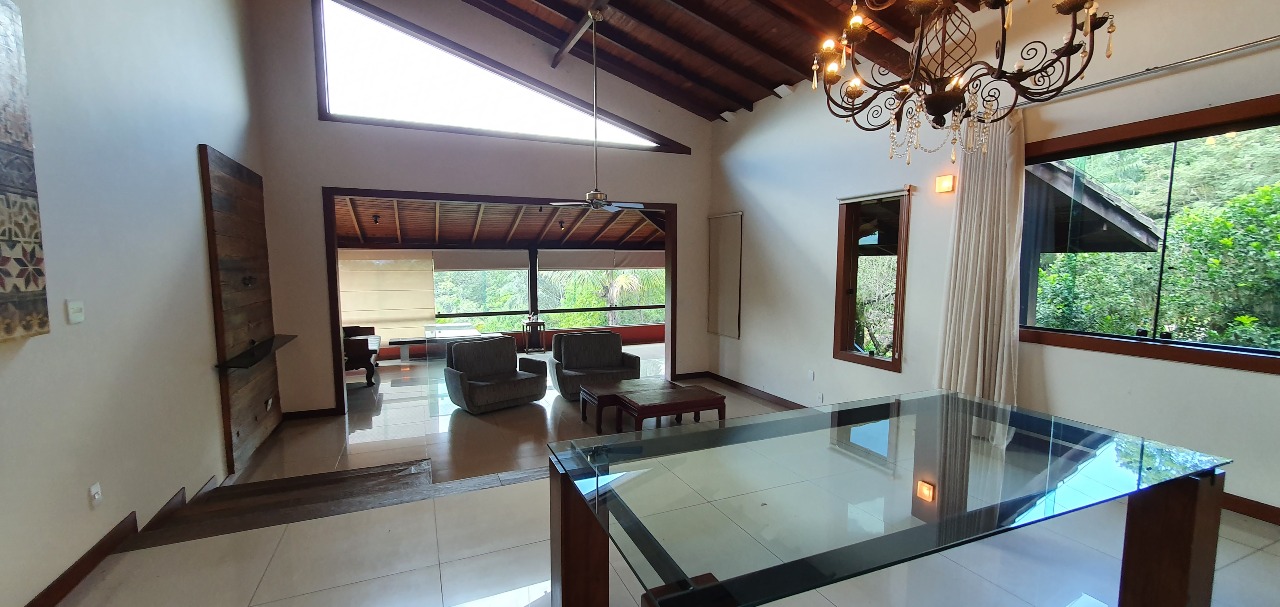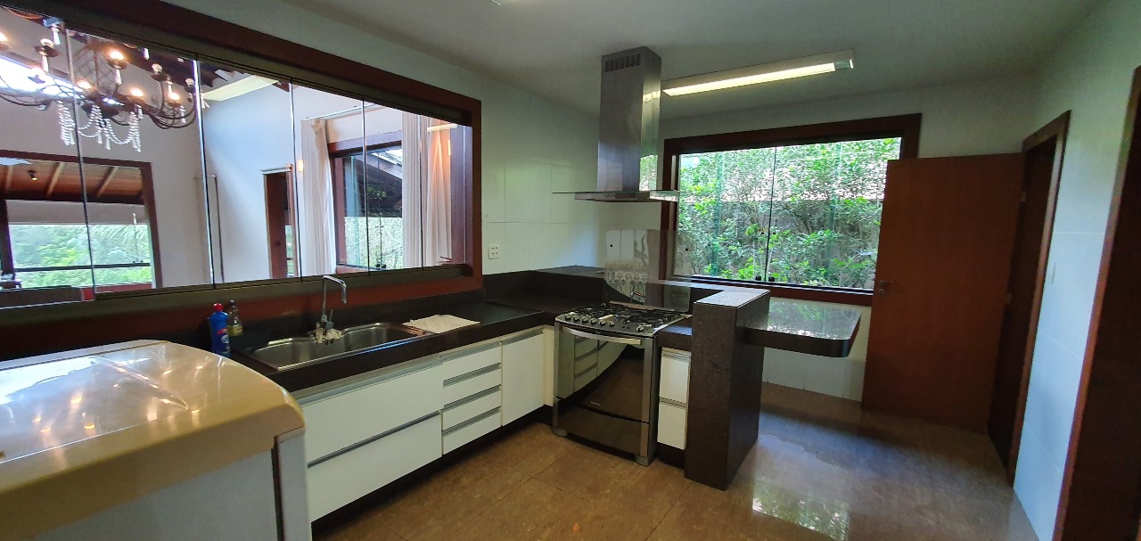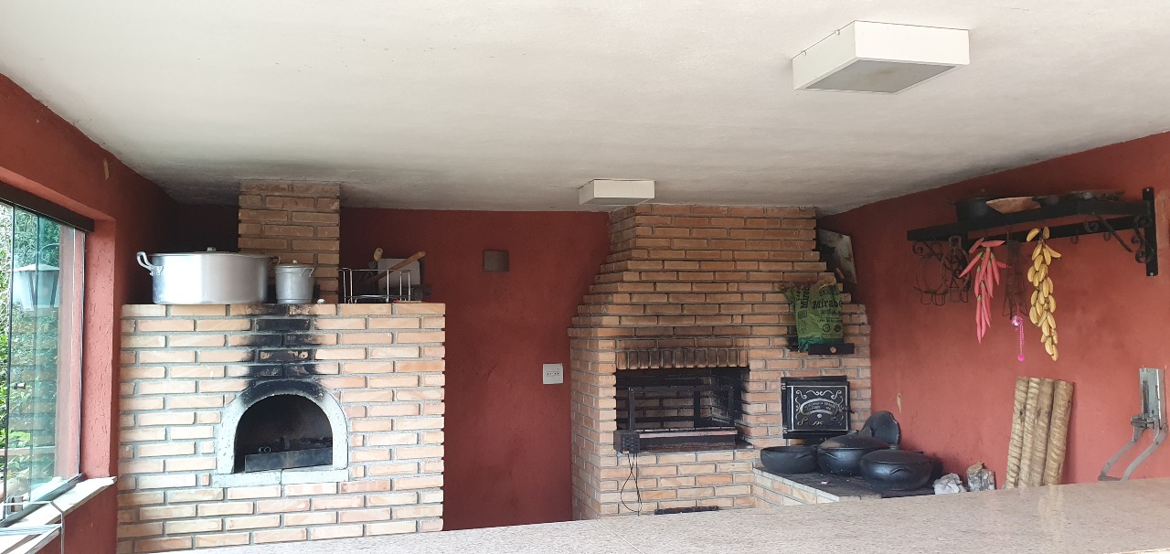 Na área externa, o imóvel conta com uma ampla área gourmet equipada com churrasqueira e fogão à lenha, banheiro, sauna e piscina, além de uma ampla garagem coberta.